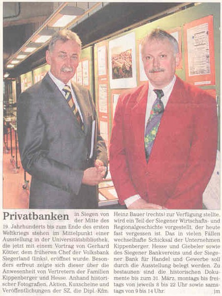 02.03.2006 - 31.03.2006: Siegener Privatbanken von der Mitte des 19. Jahrhunderts bis Ende des I. Weltkriegs