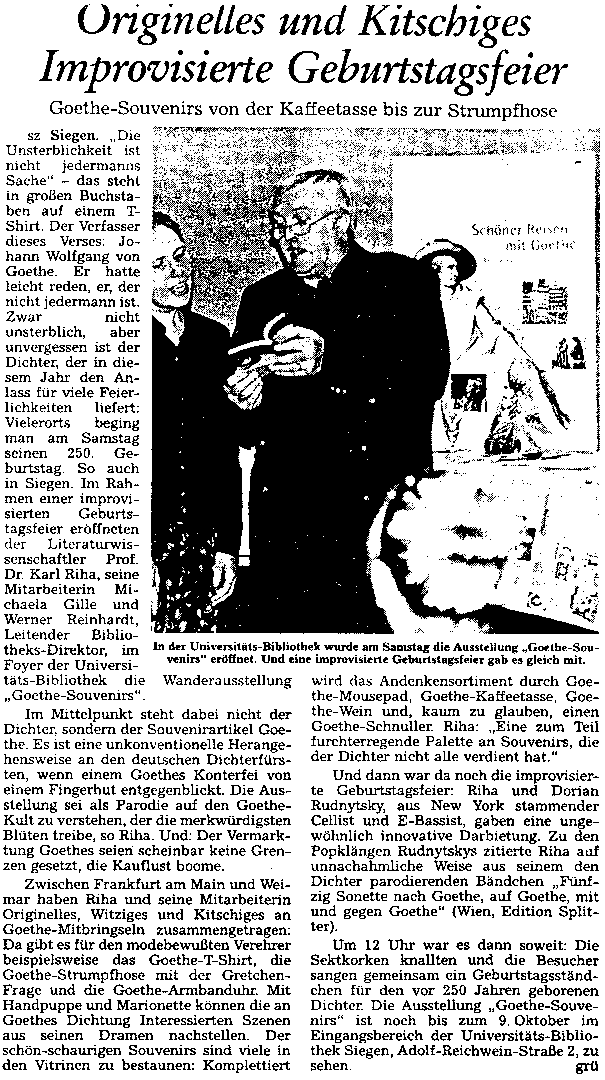 | 28.08.1999 - 09.10.1999 | Goethe-Souvenirs