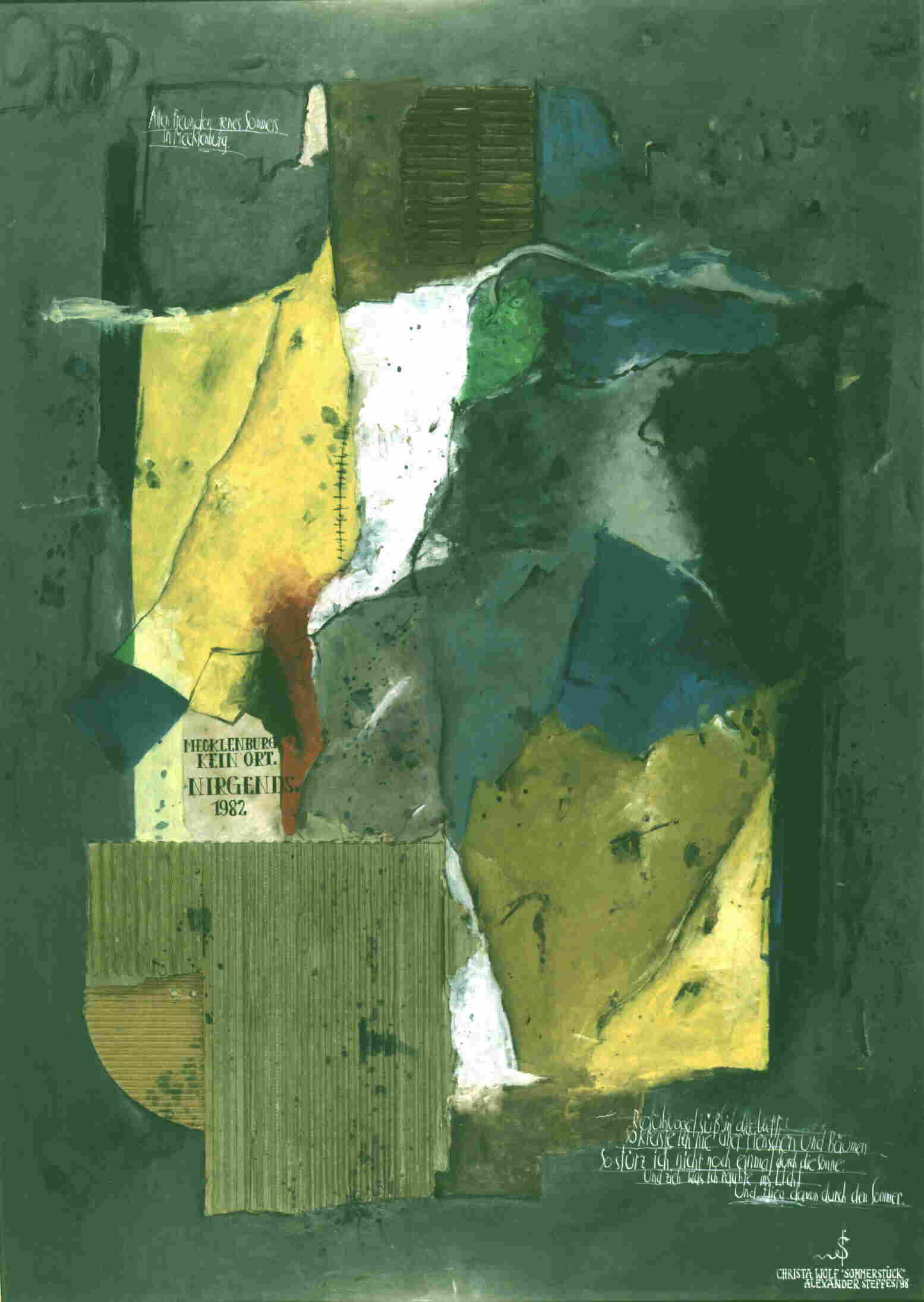 Christa Wolf: "Sommerstück", 1998 70 x 50 cm, Öl, Mischtechnik, Collage