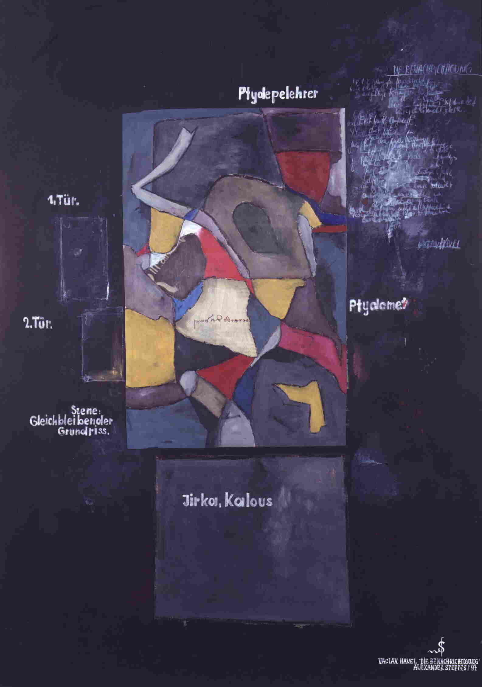 Vaclav Havel: "Die Benachrichtigung", 1997 70 x 50 cm, Öl, Tusche, Pastell, Collage