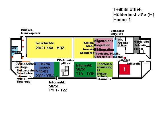 UB / Benutzung und Service / Medienstandorte und Verfügbarkeit / Pläne / Teilbibliothek H Ebene 4 /