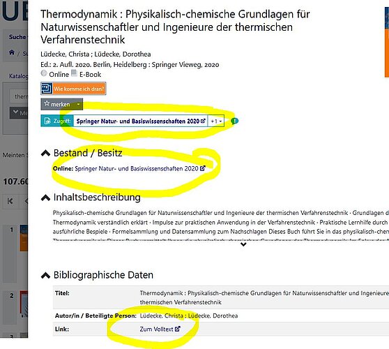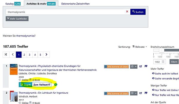 Oft finden Sie bereits in der Kurztitelliste einen Link zum Volltext. Hier gelangen Sie direkt zum Aufsatz oder eBooks.